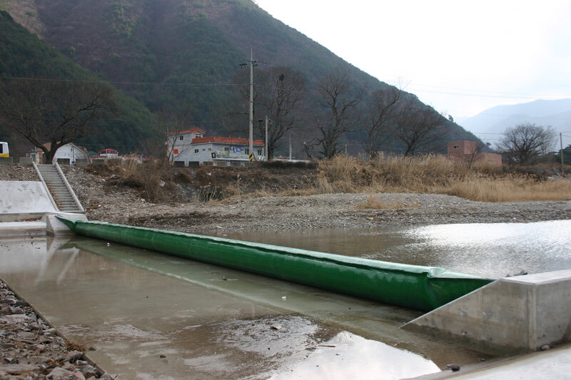 | 造价低 可减少投资 30%~70%,可节省钢材30%~50%,水泥50%左右,木材60%以上。 | 施工期短 坝袋只需3天~15天即可安装完毕,多数橡胶坝工程当年施工当年受益。 |
